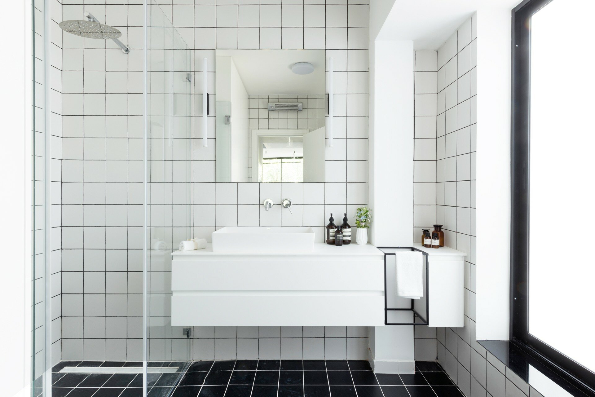 שימו לב איך פרט פשוט כמו גוון הרֶובה השחורה שבין האריחים הלבנים עושה הבדל עצום במראה. עד כמה הצבע שלה מדגיש את האריחים ואת הקווים.