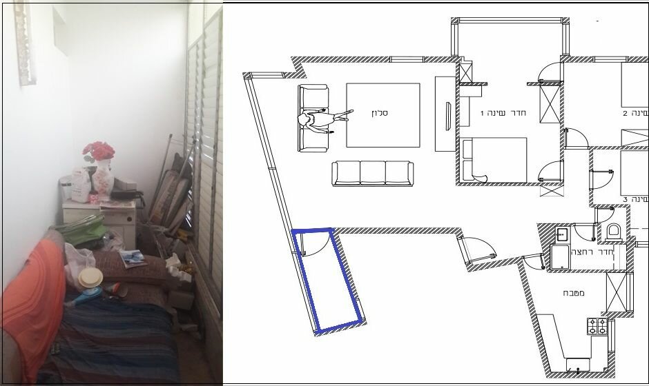 אחד מהקירות התומכים בבית שלא ניתן להסירו, מוסתר ו"נבלע "בתוך הארון שבתמונה מטה.