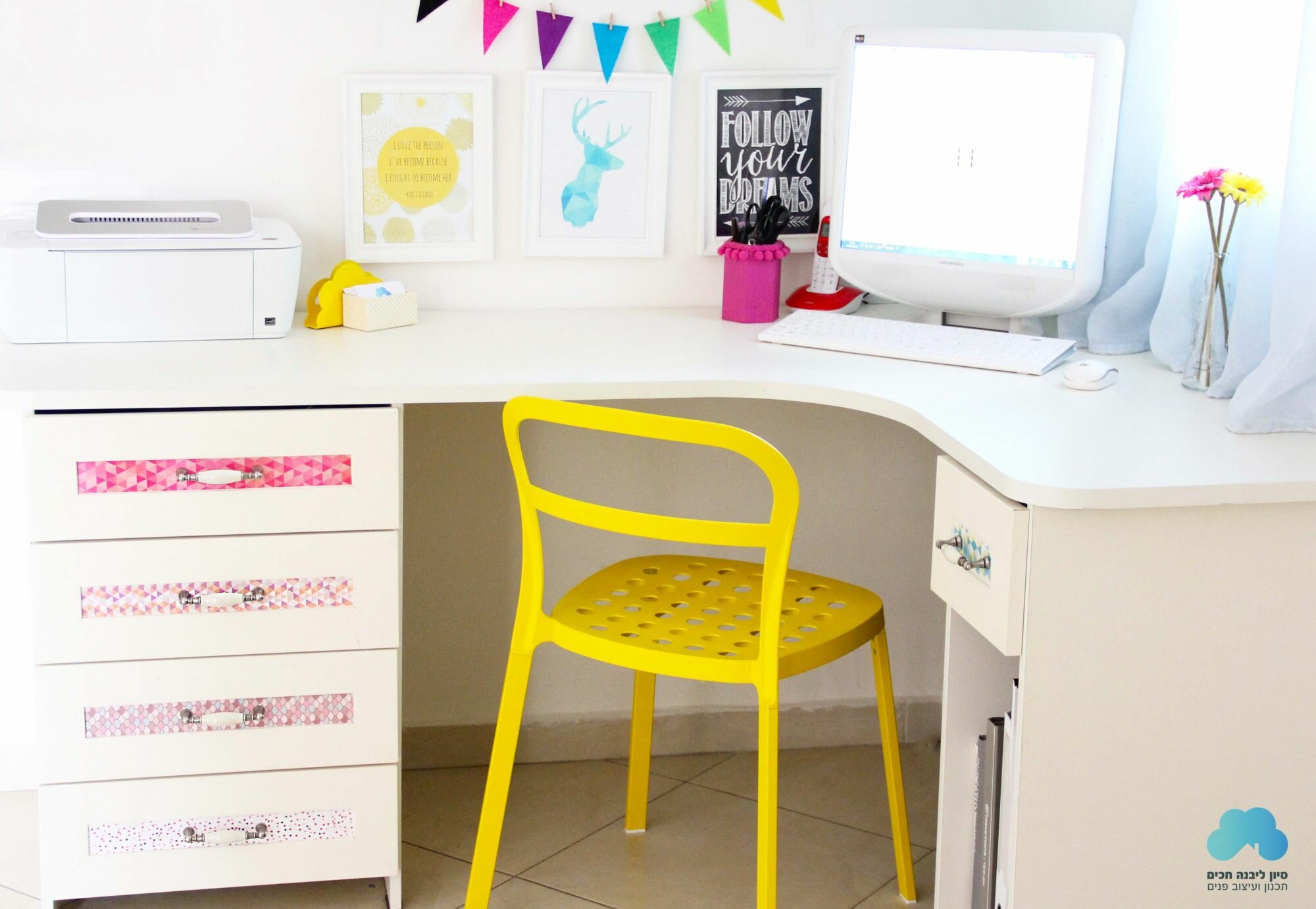 הסתכלתי עליה היטב ופתאום הן קרצו לי. המגרות. הבטתי בהן ותוך רגע נפל לי האסימון. החלטתי שאשדרג אותן עם רצועות של מדבקות. תודו שיצא שוסססס